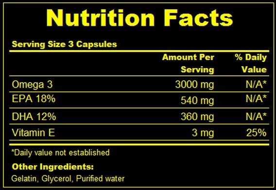 - Omega 3 obsahuje rybí olej, který je nejdůležitějším přírodním zdrojem nenasycených mastných kyselin EPA a DHA a vitamínů A a D. Snižuje riziko vzniku srdečních příhod, působí při zvýšeném krevním tlaku, srdečních arytmiích a trombózách. Napomáhá při stavbě a udržování silných kostí a zdravých zubů, kůže a vlasů. Posiluje imunitní systém a snižuje hladinu cholesterolu.