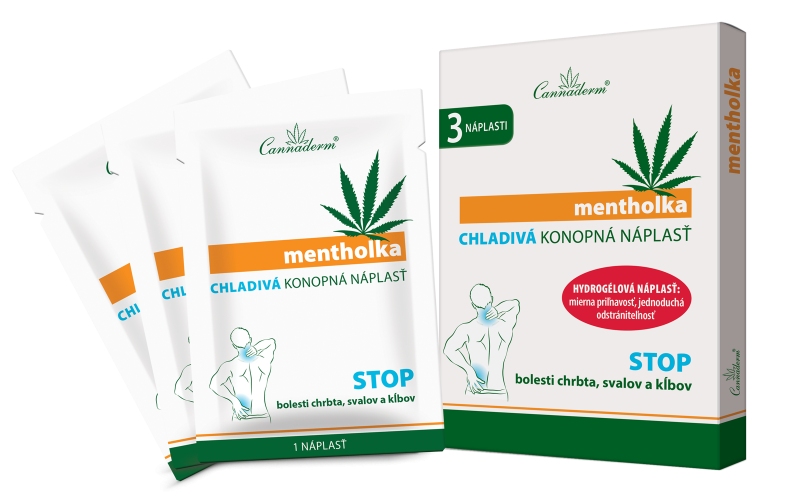 Cannaderm mentholka CHLADIVÁ KONOPNÁ NÁPLAST přináší rychlou a dlouhotrvající úlevu od bolesti zad, svalů, kloubů, pomáhá při ztuhlosti ramen, při únavě a přetížení svalů a šlach. Chladivá náplast s obsahem konopného oleje a mentolu snižuje lokální překrvení postižených míst a omezuje pocity bolesti. Hydrogelová forma umožňuje pohodlnou aplikaci, rychlý nástup chladivého účinku i snadné sejmutí náplasti z pokožky bez jejího podráždění a trhání chloupků.
