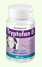 KOMPAVA Tryptofan B je směs aminokyseliny L-tryptofanu s vitaminy skupiny B - B3 a B6. L-tryptofan je esenciální aminokyselina, která se vyskytuje ze všech aminokyselin v těle nejméně, je důležitá pro správnou funkci nervového systému. Za přítomnosti vitaminu B6 má schopnost přeměnit se na neurotransmiter serotonin, melatonin a vitamin B3, které jsou nezbytné pro řadu fyziologických procesů (přijímání potravy, motorické chování, sexuální chování, spánek, agresivitu, tělesnou teplotu, depresivní nálady, psychické a duševní poruchy). Vitamíny B6 a B3 přispívají správnému fungování nervového systému a psychiky, napomáhají ke snížení únavy a vyčerpání.
