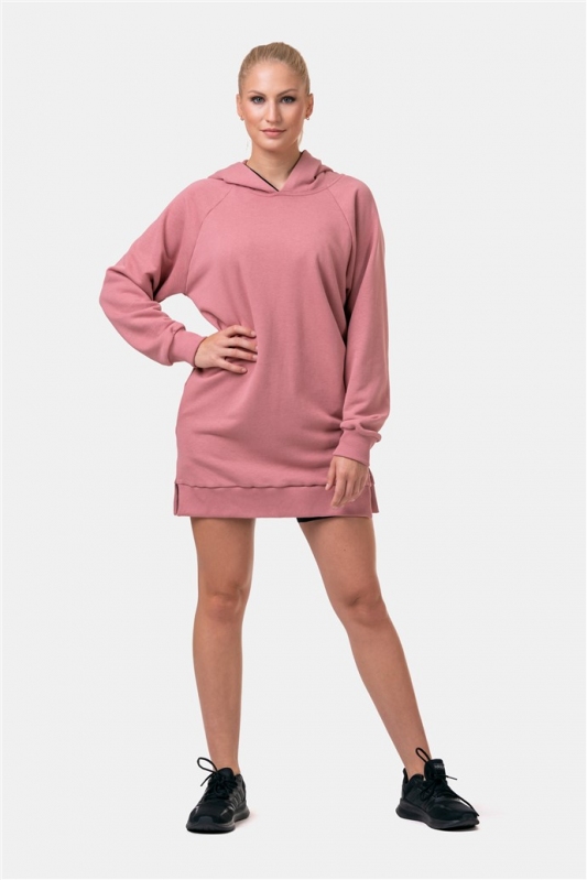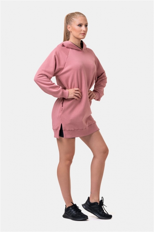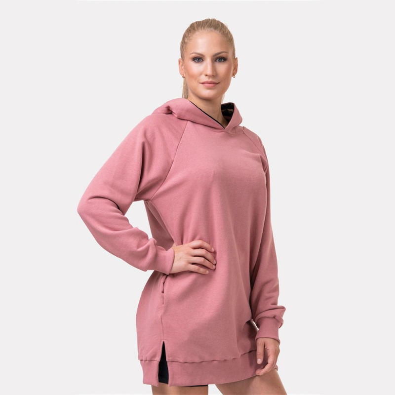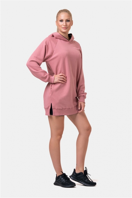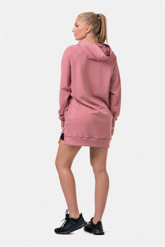 NEBBIA Dlouhá Everyday HERO mikina s kapucí 580 - Starorůžová