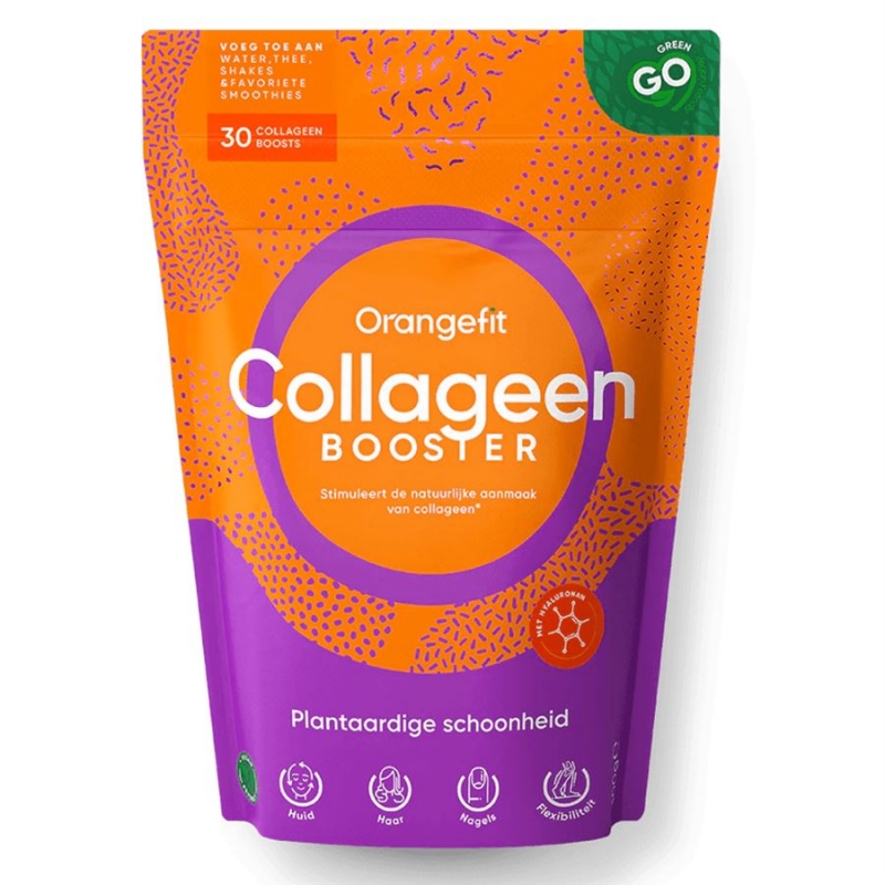 Collagen Booster Orangefit obsahuje unikátní kombinaci účinných látek - hyaluronanu, speciálně vybraných aminokyselin, vitamínů skupiny B, vitamínu C a zinku. Všechny tyto látky mají vlastnosti související s přirozenou produkcí kolagenu v těle.