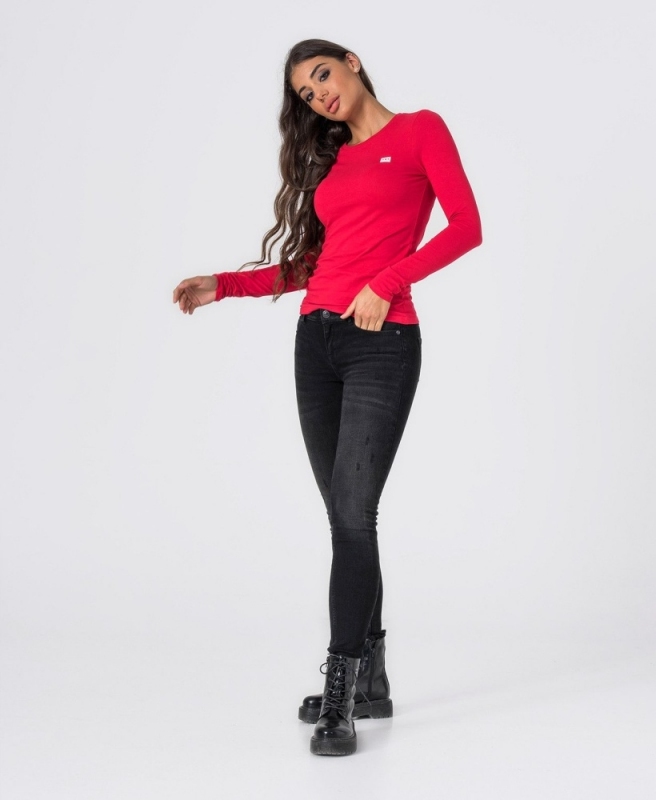 Retrojeans dámské tričko s dlouhým rukávem L ROUND W 20 - Červená