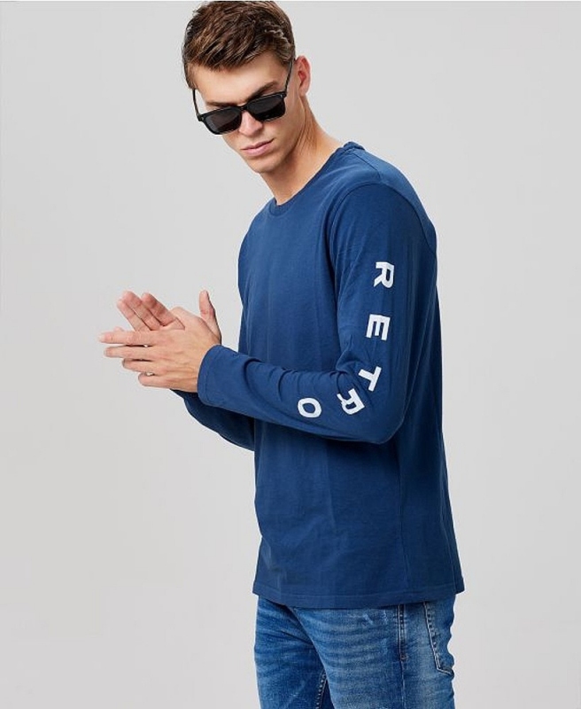 Retrojeans Pánske tričko s dlhým rukávom LEBOMBO - Tmavomodrá