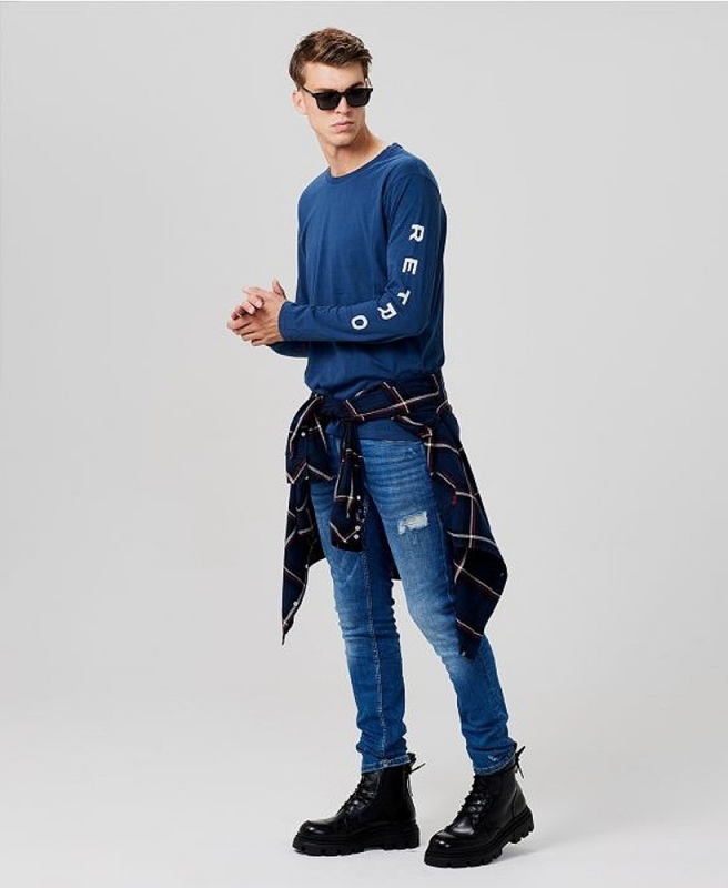 Pánske tričko s dlhým rukávom z kolekcie Retro Jeans jeseň zima 2023