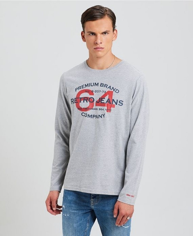 Retrojeans Pánske tričko s dlhým rukávom PARANA - Sivá