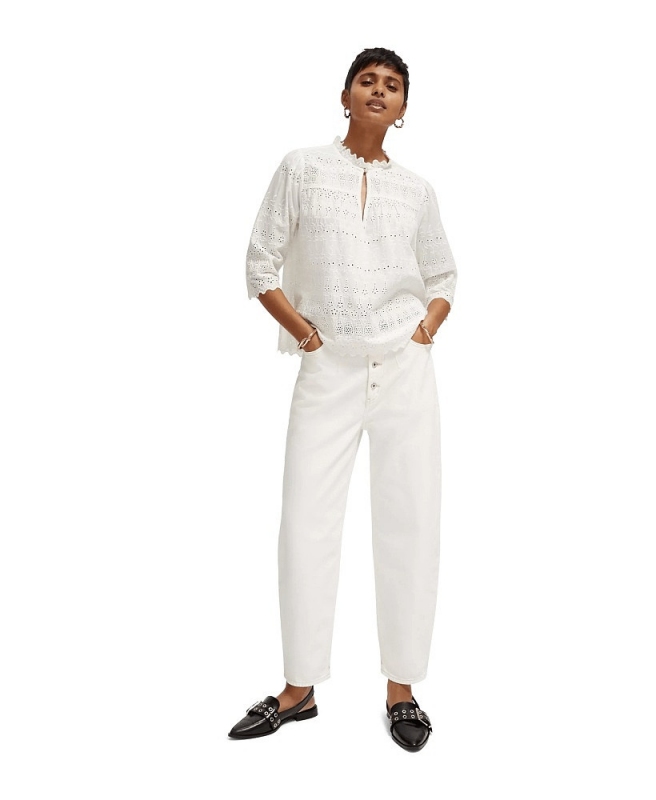 Scotch & Soda dámsky top Broderie anglaise - Biela
