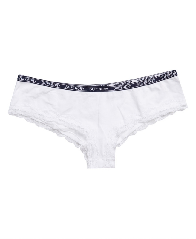 - Kalhotky mají krajkové okraje a elastický pás s logem značky Superdry.