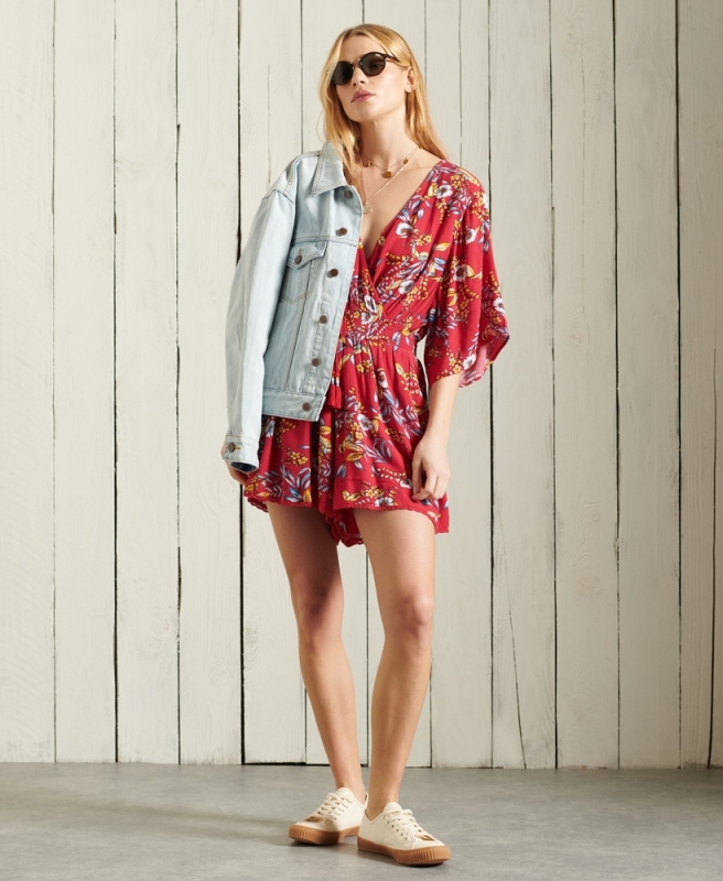 Superdry dámské plážové šaty Beach - Červená