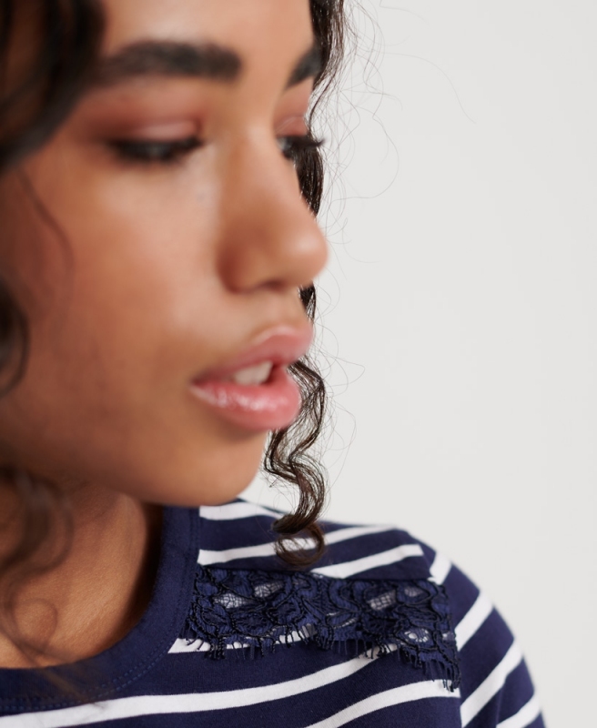 Superdry dámské šaty Eden Lace Mix - Námořnická modrá
