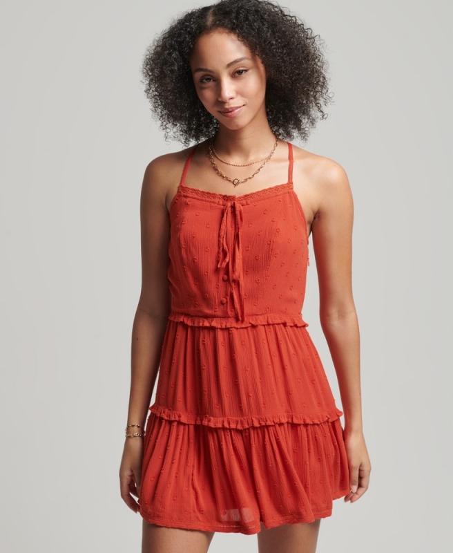 Superdry dámské šaty Vintage Broderie Cami - Červená