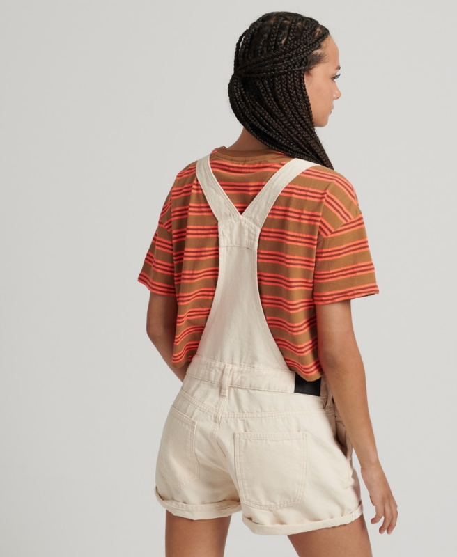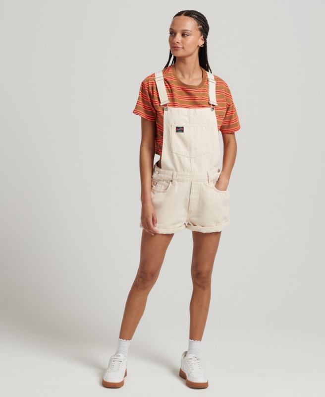 Superdry dámske šaty vintage canvas short dungaree - Krémová