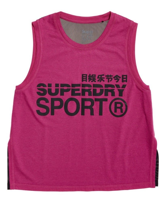 Dámské sportovní tílko Superdry Active Loose. Zadní část tílka je ze vzdušné síťoviny a na přední straně je nápis Superdry Sport.