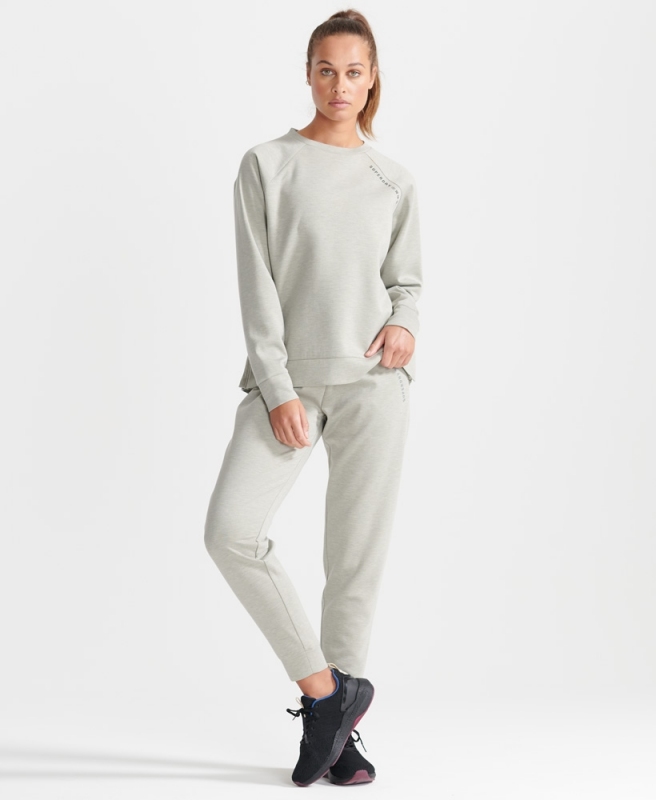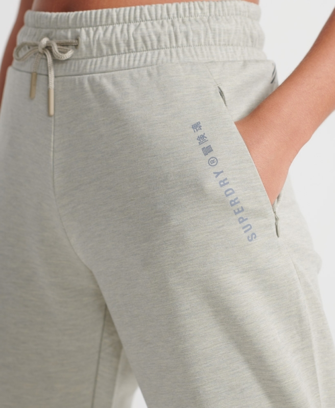Superdry dámské tepláky Training - Krémová. Tepláky mají elastický pás se stahovací šňůrkou, kapsy na zip.