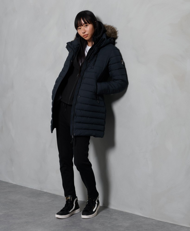 Kabát, který nikdy nevyjde z módy. Super Fuji je klasická bunda se zapínáním na zip a druky, má ozdobu z umělé kožešiny, tři přední kapsy a elastické manžety.