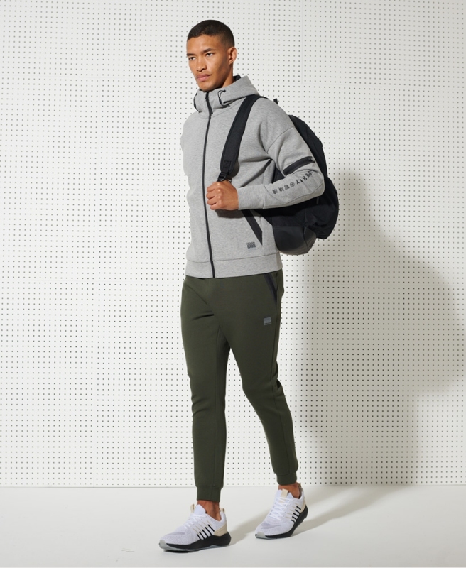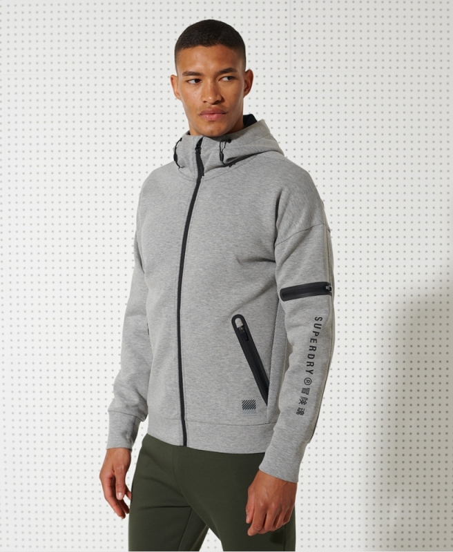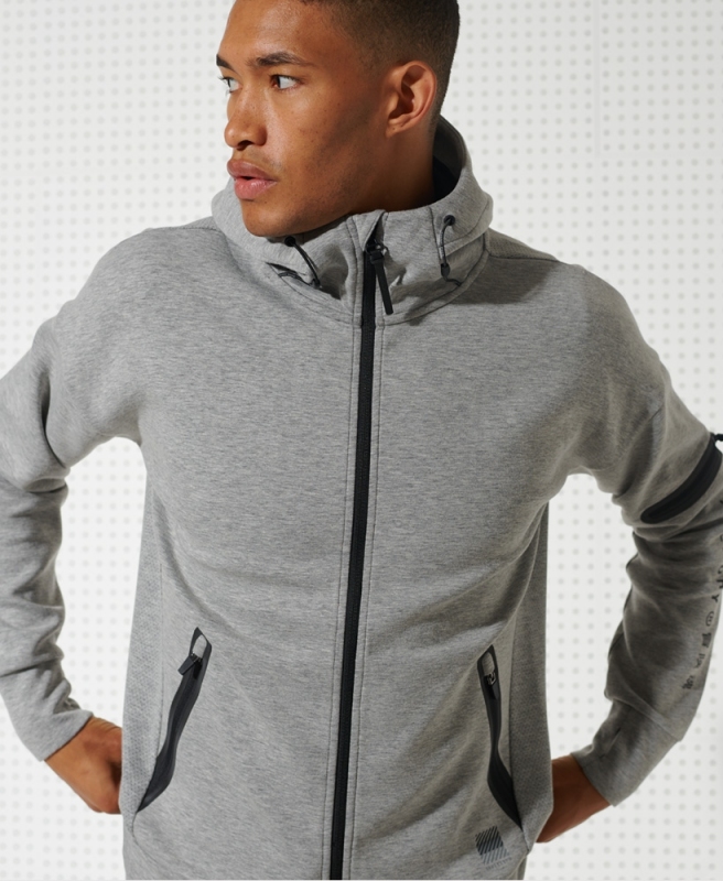 Superdry pánská mikina Training Gymtech Zip - Šedá. Má zapínání na zip, stahovatelnou kapuci.