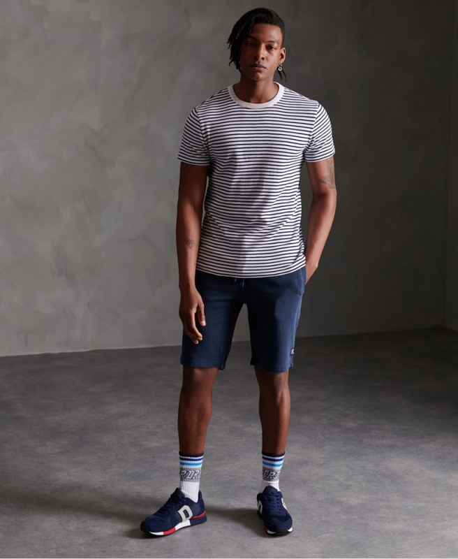 Superdry pánské teplákové kraťasy Superstate - Tmavěmodrá. Tyto šortky mají žebrovaný stahovací pás.
