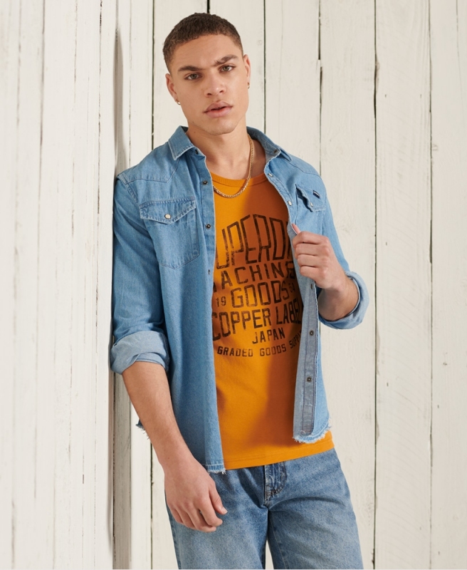 Superdry pánské tílko Workwear Graphic - Oranžová. Klasické pánské tílko potištěné ozdobnou grafikou.
