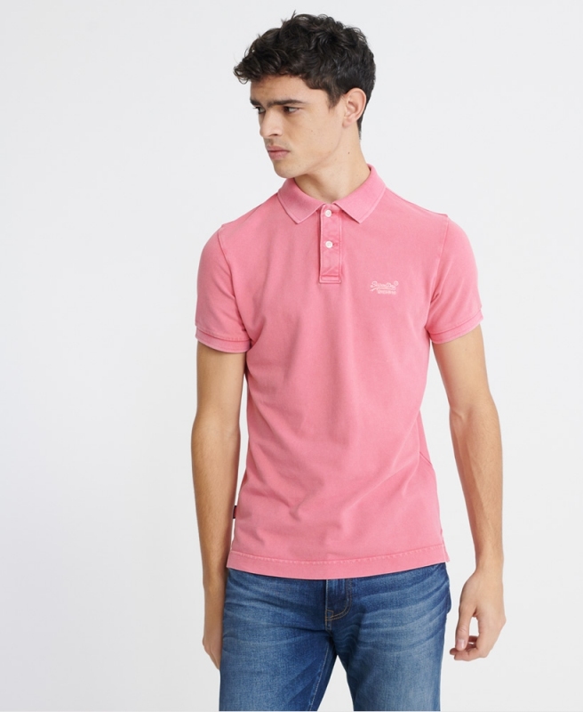 Superdry pánské triko Organic Cotton Vintage Destroyed Pique Polo - Růžová