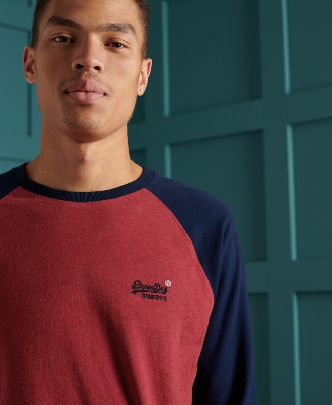 Superdry pánské tričko s dlouhými rukávy Baseball - Červená