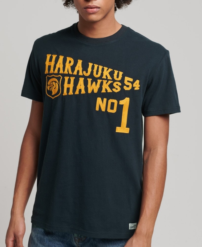 Superdry pánské tričko Vintage Collegiate - Námořnická modrá