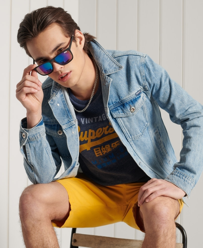Superdry pánské tričko Vintage Logo Tri - Světlemodrá