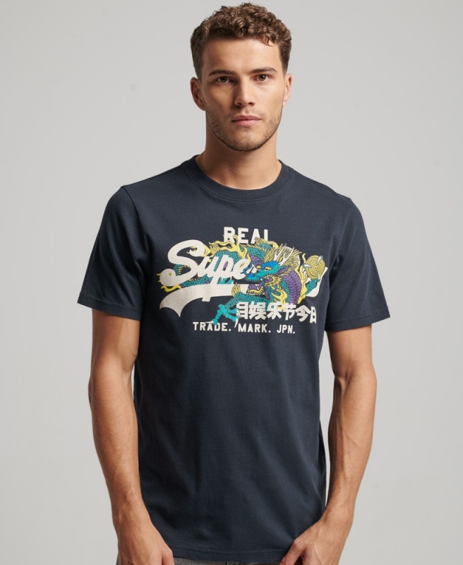 Superdry pánske tričko vintage vl narrative tee - Námornícka modrá