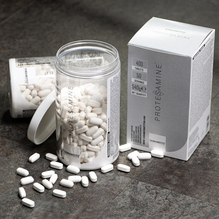 Protesamine® je nový a inovativní patent společnosti Yamamoto Nutrition, který má přinést vizi třídy doplňků výživy založených na aminokyselinách na novou absolutní úroveň, vyvinutou kontinuálním studiem a pečlivou analýzou a výzkumem transportních technologií.