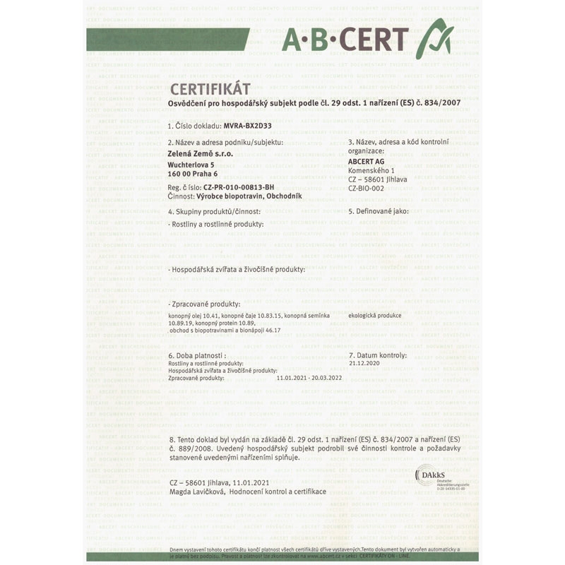 Kvalita: BIO - semínka byla vypěstována v ekologicky certifikovaném zemědělství