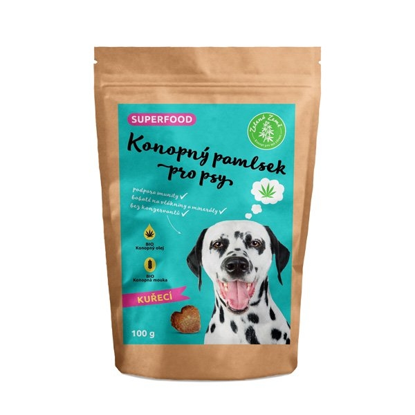 Zelená Země Konopný pamlsek pro psy / kuřecí příchuť - 100g